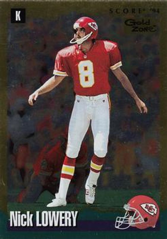 The Nick Lowery 1994 Score #131 Gold Zone card is 1 of 2 Nick Lowery's card variations in the 1994 Score set being tracked by Sports Card Investor, including Base.