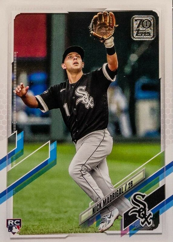 This card is 1 of 7 Nick Madrigal's card variations in the 2021 Topps set being tracked by Sports Card Investor, including Gold Foil, Gold /2021, Green Foil /499, 70 Years of Baseball Auto, and SP Variation.