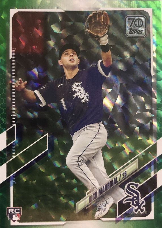 This card is 1 of 7 Nick Madrigal's card variations in the 2021 Topps set being tracked by Sports Card Investor, including Base, Gold Foil, Gold /2021, 70 Years of Baseball Auto, and SP Variation.