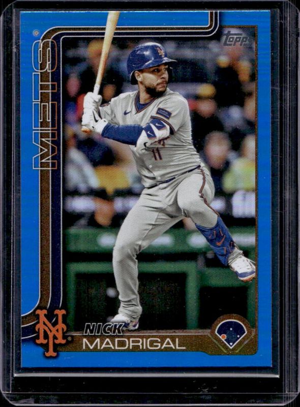 The Nick Madrigal 2025 Topps #355 Blue Rainbow /150 card is 1 of 56 Nick Madrigal's card variations in the 2025 Topps set being tracked by Sports Card Investor, including Base, Aqua Holo Foil, Diamante Foil, Holo Foil, and Pink Diamante Foil.