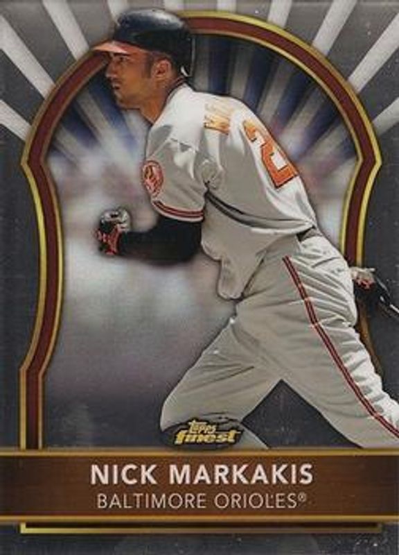 The Nick Markakis 2011 Topps Finest #11 Base card is 1 of 22 Nick Markakis' card variations in the 2011 Topps Finest set being tracked by Sports Card Investor, including Refractor /549, X-Fractor /299, Green Refractor /199, Orange Refractor /99, and Gold Refractor /50.