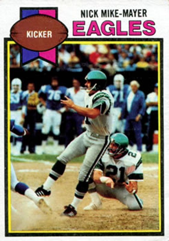 The Nick Mike-Mayer 1979 Topps #107 Base card is 1 of 2 Nick Mike-Mayer's card variations in the 1979 Topps set being tracked by Sports Card Investor, including Cream Back.