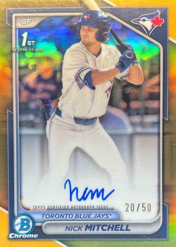 2024 Bowman Draft Nick Mitchell Chrome Auto Gold Refractor 1st #20/50