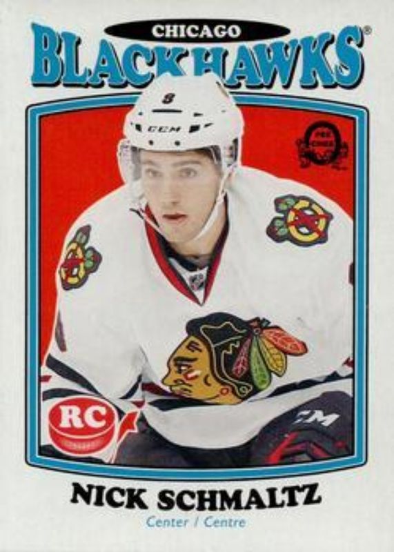 The Nick Schmaltz 2016 Upper Deck 2016 O-Pee-Chee Update Retro Blank Back Rookie card is 1 of 30 Nick Schmaltz's card variations in the 2016 Upper Deck set being tracked by Sports Card Investor, including Young Guns Base, Young Guns Canvas, Young Guns - Clear Cut, Young Guns - Gold Rainbow Foil, and Young Guns - Jumbo.
