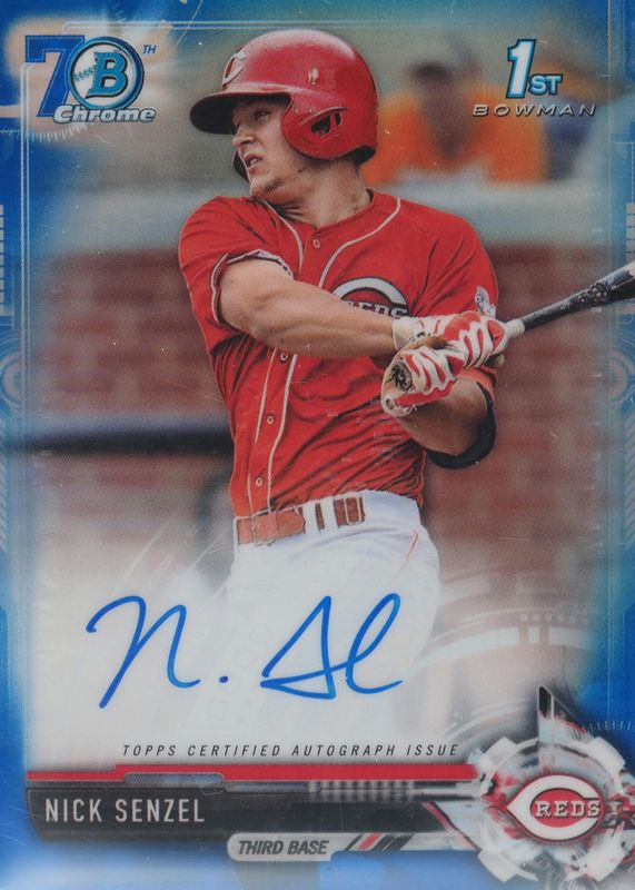 Auctions Ending Soon for Nick Senzel 2017 Bowman #CPA-NS Chrome Prospect Auto - 70th Anniversary Blue Refractor (1st) RAW