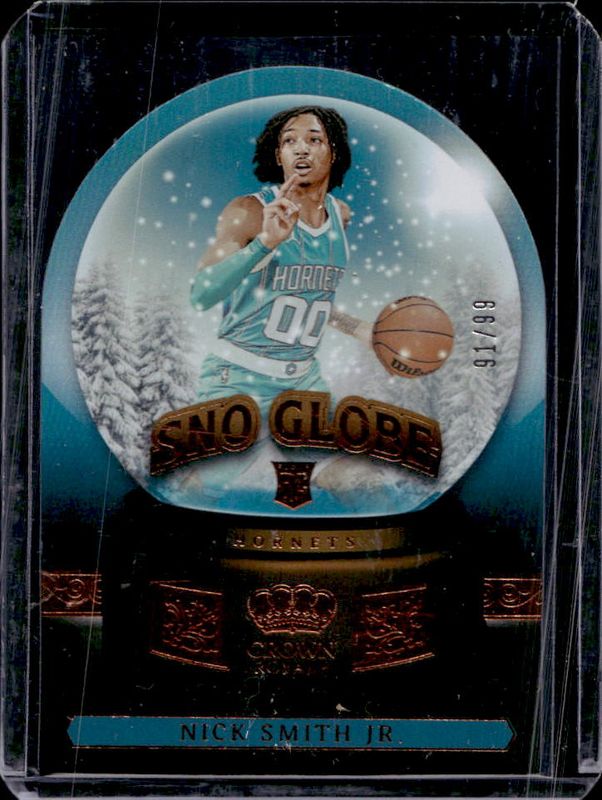 The Nick Smith Jr. 2023 Crown Royale #2 Sno Globe /99 Rookie card is 1 of 36 Nick Smith Jr.'s card variations in the 2023 Crown Royale set being tracked by Sports Card Investor, including Base, Crystal, International Red, Royalty, and Blue Crystal /99.