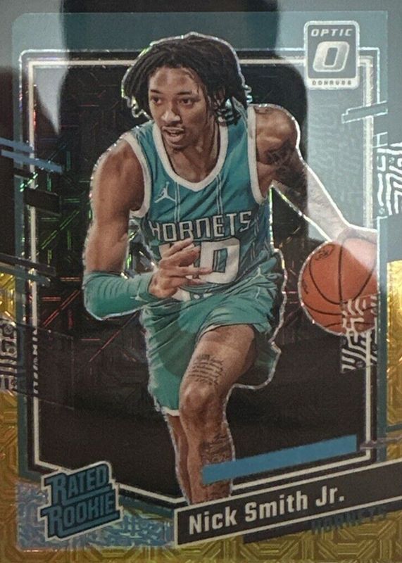 The Nick Smith Jr. 2023 Optic #224 Choice Black Gold /8 Rookie card in Raw condition has not changed in price in the last 30 days and was last sold for $110.66 .