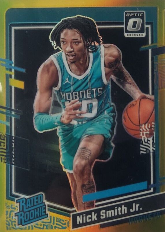 The Nick Smith Jr. 2023 Optic #224 Gold /10 Rookie card in Raw condition has not changed in price in the last 30 days and was last sold for $125.00 .