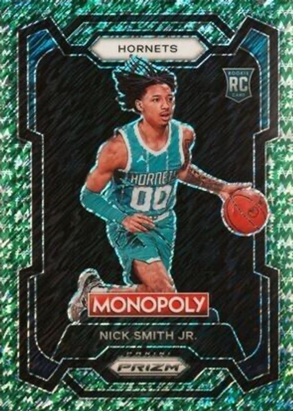 The Nick Smith Jr. 2023 Prizm Monopoly #14 Green Millionaire Shimmer /20 Rookie card in Raw condition has not changed in price in the last 30 days and was last sold for $34.99 .