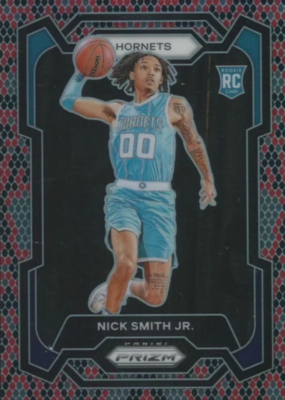 The Nick Smith Jr. 2023 Prizm #135 Snakeskin /(SSP) Rookie card in Raw condition has not changed in price in the last 30 days and was last sold for $64.99 .