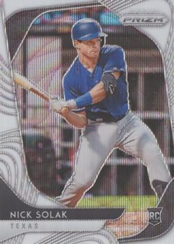 The Nick Solak 2020 Prizm #232 White Wave Rookie card is 1 of 60 Nick Solak's card variations in the 2020 Prizm set being tracked by Sports Card Investor, including Base, Blue, Carolina Blue, Cosmic Haze, and Green.