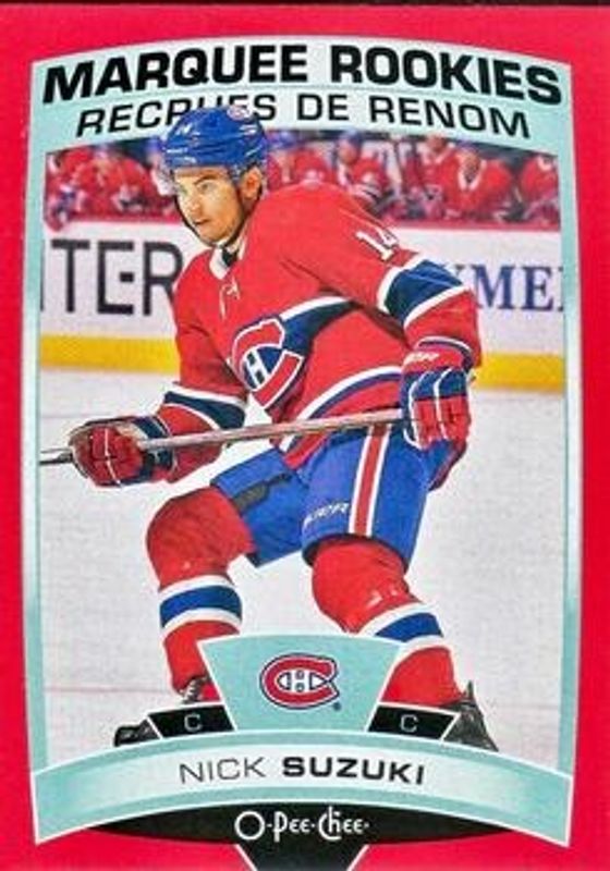 The Nick Suzuki 2019 Upper Deck #647 2019 O-Pee-Chee Update - Red Rookie card is 1 of 40 Nick Suzuki's card variations in the 2019 Upper Deck set being tracked by Sports Card Investor, including Young Guns Base, Young Guns Canvas, Young Guns - Clear Cut, Young Guns - Clear Cut Exclusives, and Young Guns - Silver Foil.