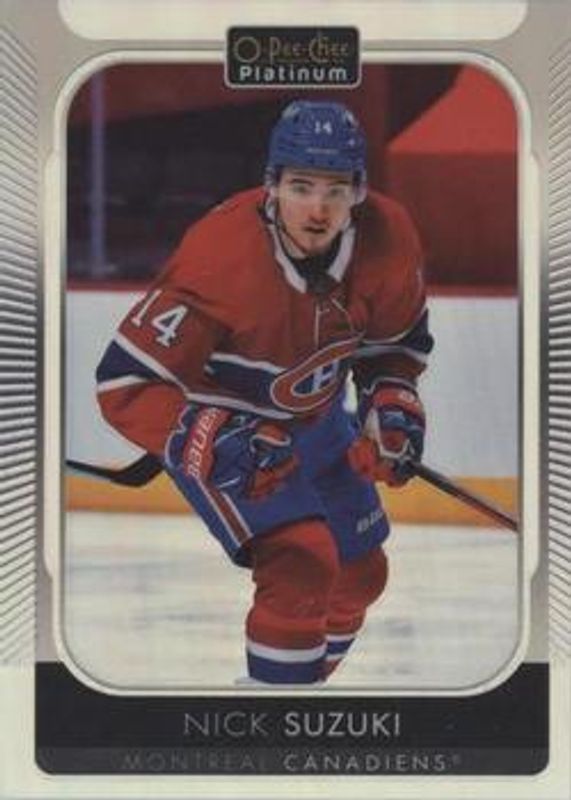 The Nick Suzuki 2021 O-Pee-Chee Platinum #82 Rainbow card is 1 of 32 Nick Suzuki's card variations in the 2021 O-Pee-Chee Platinum set being tracked by Sports Card Investor, including Base, Blue Surge, Matte Pink, Neon Yellow Surge, and Red Surge.