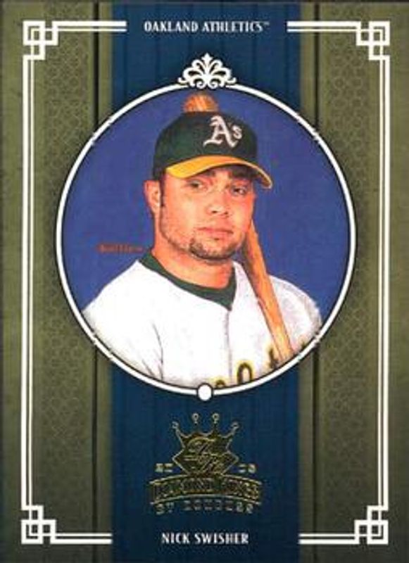 The Nick Swisher 2005 Diamond Kings #379 Base card is 1 of 20 Nick Swisher's card variations in the 2005 Diamond Kings set being tracked by Sports Card Investor, including Framed Red, Non Canvas, Framed Blue /100, Bronze /50, and Framed Green /50.