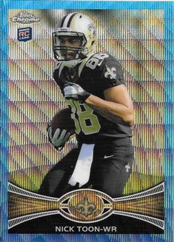 The Nick Toon 2012 Topps Chrome #BW-193 Blue Wave Refractor Rookie card is 1 of 52 Nick Toon's card variations in the 2012 Topps Chrome set being tracked by Sports Card Investor, including Base, Rookie Autographs, Rookie Autographs - Refractor /178, Rookie Autographs - Camo Refractor /105, and Rookie Autographs - Pink Refractor /75.