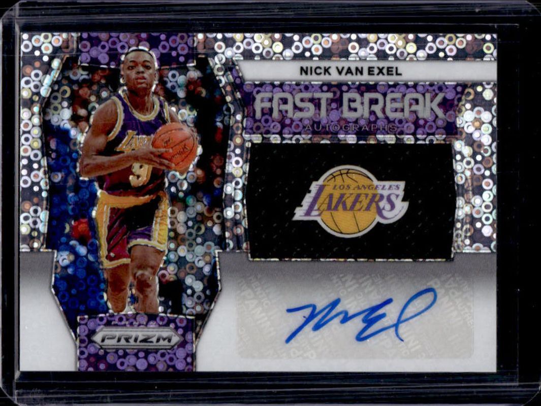 Nick Van Exel's Basketball cards are available in at least 220 sets. Nick Van Exel's biggest 7-day price movers are 2023 Prizm #FB-NVE Fast Break Autographs, 2023 Prizm #FB-NVE Fast Break Autographs - Black /1, and 2023 Prizm #FB-NVE Fast Break Autographs - Blue Disco /49.