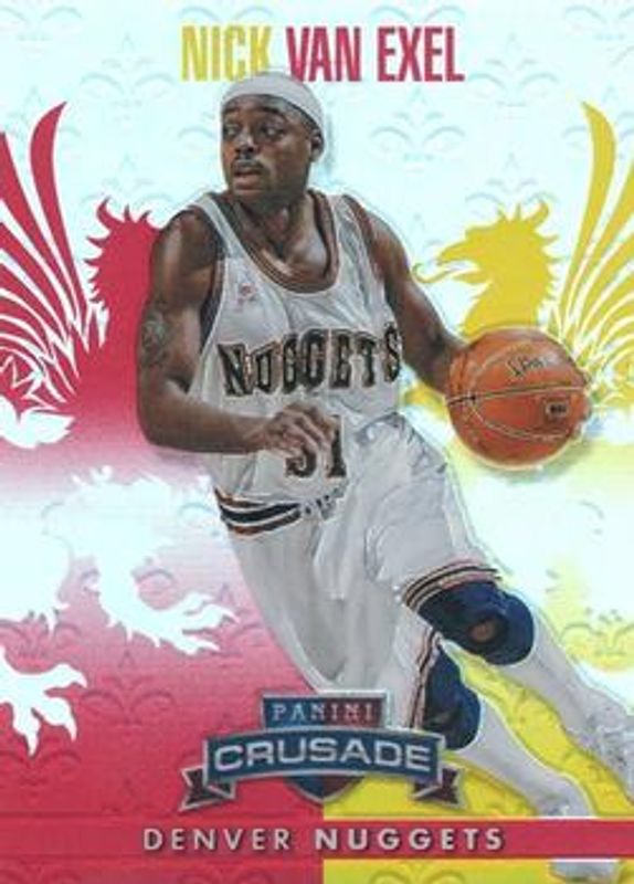 The Nick Van Exel 2013 Crusade #103 Crusade Red /349 card is 1 of 13 Nick Van Exel's card variations in the 2013 Crusade set being tracked by Sports Card Investor, including Base, Silver /25, Gold /10, 2014 National Blue /5, and Black /1.