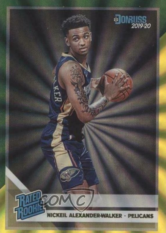 The Nickeil Alexander-Walker 2019 Donruss #216 Green & Yellow Laser Rookie card in Raw condition has not changed in price in the last 30 days and was last sold for $1.25 .