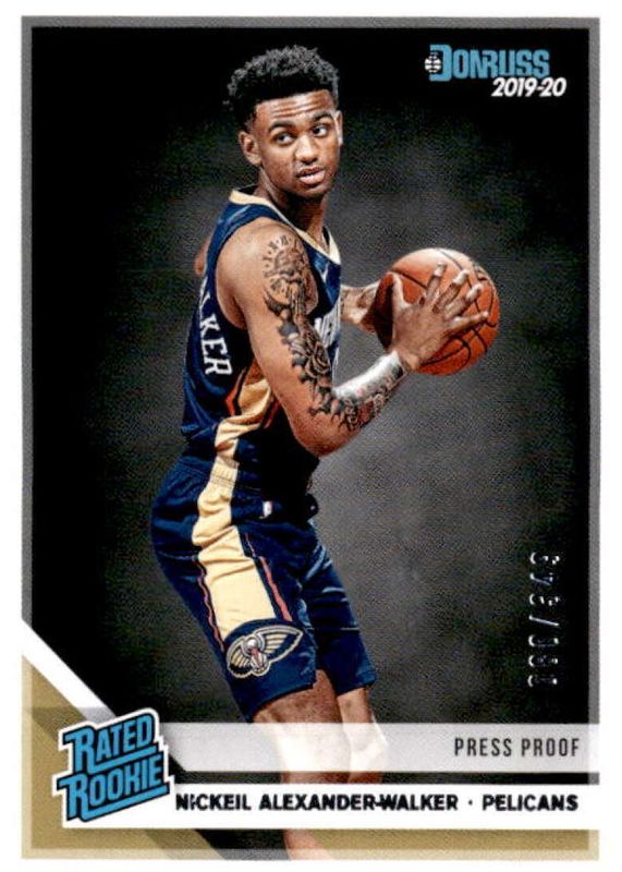 The Nickeil Alexander-Walker 2019 Donruss #216 Press Proof Silver /349 Rookie card in Raw condition has not changed in price in the last 30 days and was last sold for $4.00 .