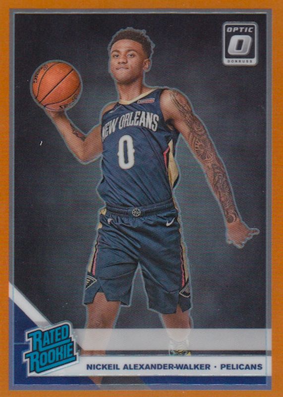 The Nickeil Alexander-Walker 2019 Optic #184 Orange /199 Rookie card in Raw condition has not changed in price in the last 30 days and was last sold for $5.50 .