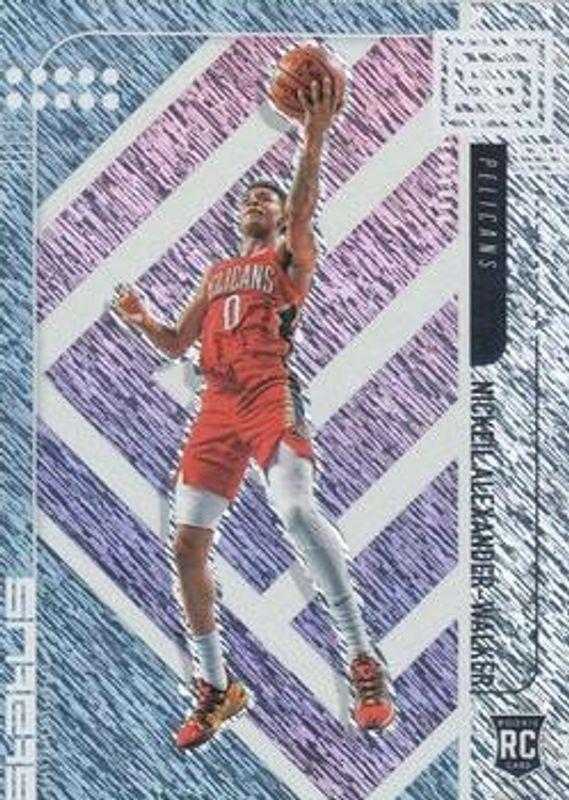 The Nickeil Alexander-Walker 2019 Status #8 Blue Rookie card is 1 of 22 Nickeil Alexander-Walker's card variations in the 2019 Status set being tracked by Sports Card Investor, including Base, Red, White Diamonds /125, Green Escher Squares /49, and Gold Fireworks /10.