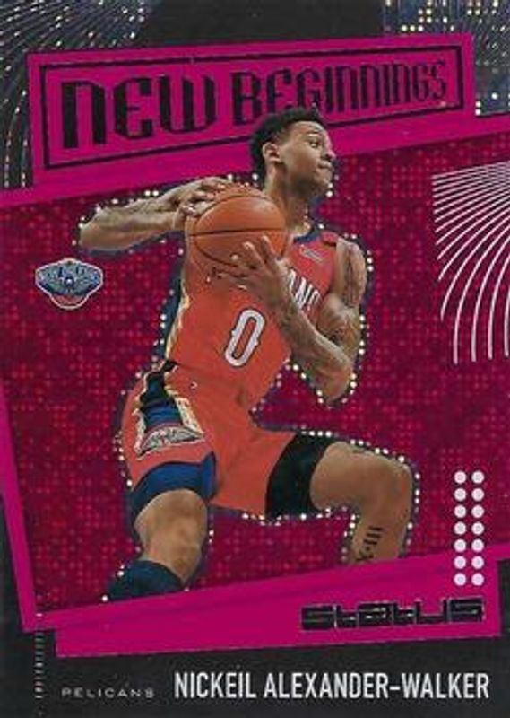 The Nickeil Alexander-Walker 2019 Status #4 New Beginnings - Red Rookie card is 1 of 22 Nickeil Alexander-Walker's card variations in the 2019 Status set being tracked by Sports Card Investor, including Base, Blue, Red, White Diamonds /125, and Green Escher Squares /49.