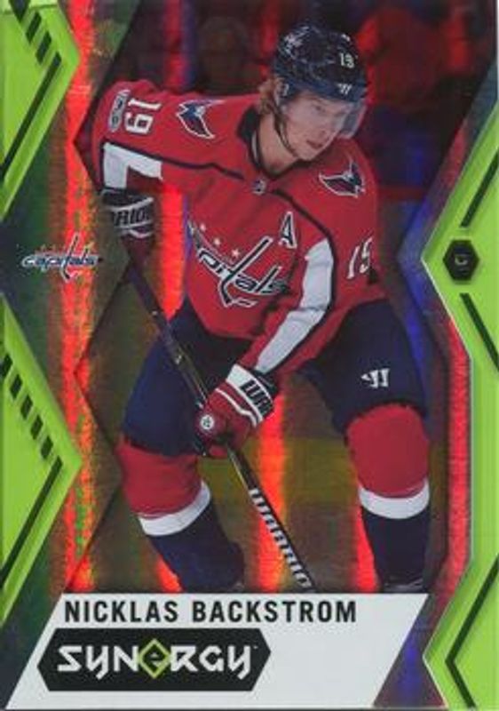 The Nicklas Backstrom 2017 Upper Deck Synergy #29 Green card is 1 of 8 Nicklas Backstrom's card variations in the 2017 Upper Deck Synergy set being tracked by Sports Card Investor, including Base /17, Blue, Purple, Red, and Red Bounty.