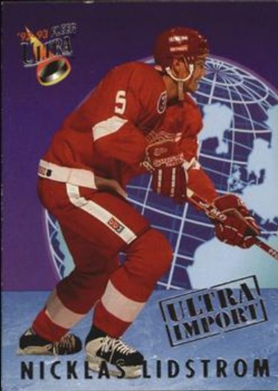 The Nicklas Lidstrom 1992 Fleer Ultra #13 Ultra Imports card is 1 of 2 Nicklas Lidstrom's card variations in the 1992 Fleer Ultra set being tracked by Sports Card Investor, including Ultra Rookies.