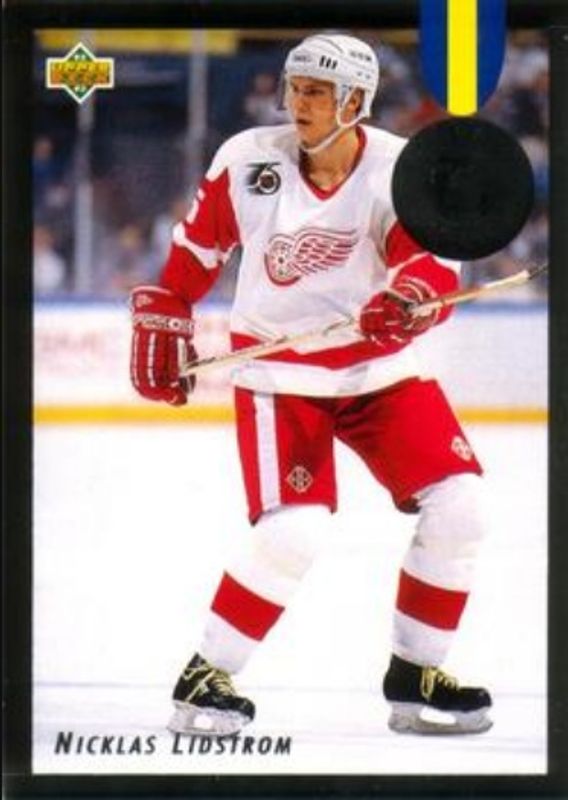 The Nicklas Lidstrom 1992 Upper Deck #E9 Euro Stars card is 1 of 6 Nicklas Lidstrom's card variations in the 1992 Upper Deck set being tracked by Sports Card Investor, including #178 Base, #363 Base, #AR4 All Rookie Team, #W4 All World Team, and #ERT2 Euro Rookie Team Holograms.