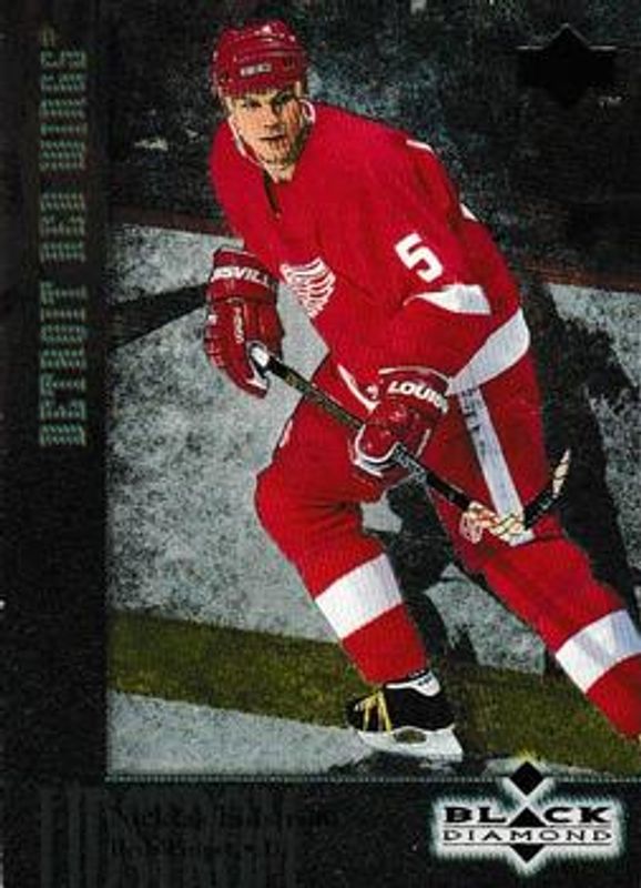 The Nicklas Lidstrom 1996 Upper Deck Black Diamond #50 Base card is 1 of 2 Nicklas Lidstrom's card variations in the 1996 Upper Deck Black Diamond set being tracked by Sports Card Investor, including Gold.