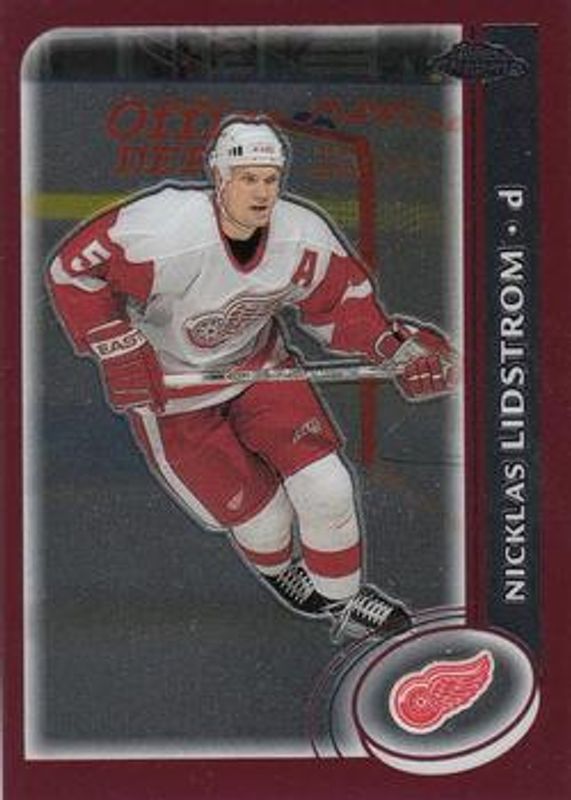 The Nicklas Lidstrom 2002 Topps Chrome #123 Base card is 1 of 3 Nicklas Lidstrom's card variations in the 2002 Topps Chrome set being tracked by Sports Card Investor, including Refractor, and Black Border Refractor /100.
