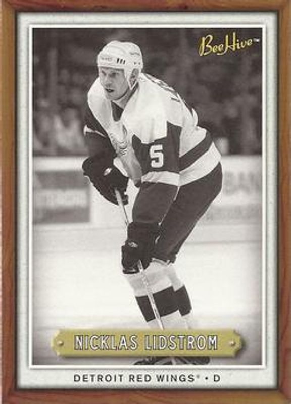 The Nicklas Lidstrom 2006 Upper Deck Beehive #67 Wood card is 1 of 11 Nicklas Lidstrom's card variations in the 2006 Upper Deck Beehive set being tracked by Sports Card Investor, including Base, 5x7 Photo Cards, 5x7 Variation, Blue, and Gold.