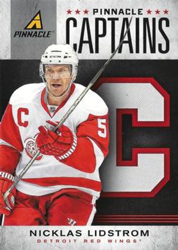 The Nicklas Lidstrom 2011 Pinnacle #2 Captains card is 1 of 10 Nicklas Lidstrom's card variations in the 2011 Pinnacle set being tracked by Sports Card Investor, including Base, Rink Collection, Printing Plate Black /1, Printing Plate Cyan /1, and Printing Plate Magenta /1.