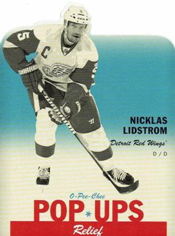 The Nicklas Lidstrom 2012 O-Pee-Chee #PU-16 Pop Ups card is 1 of 10 Nicklas Lidstrom's card variations in the 2012 O-Pee-Chee set being tracked by Sports Card Investor, including Base, Rainbow, Retro, Retro Blank Back, and Black Rainbow /100.