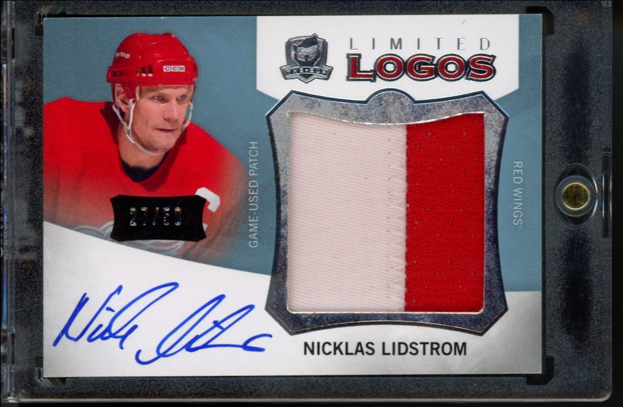 The Nicklas Lidstrom 2012 Upper Deck The Cup #LL-NL Limited Logos Autographs /50 card is 1 of 10 Nicklas Lidstrom's card variations in the 2012 Upper Deck The Cup set being tracked by Sports Card Investor, including Base /249, Gold /25, Gold Rainbow /10, Black /1, and Black Laundry Tags /1.