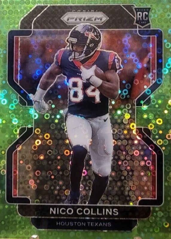 This card is 1 of 62 Nico Collins' card variations in the 2021 Prizm set being tracked by Sports Card Investor, including Base, Disco, Green, Green Ice, and Lazer.