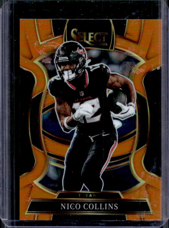 The Nico Collins 2025 Select #35 Concourse Orange /49 card is 1 of 101 Nico Collins' card variations in the 2025 Select set being tracked by Sports Card Investor, including Concourse, Field Level, Concourse Black & Blue Shock, Concourse Black & Gold Shock, and Concourse Black & Green Shock.