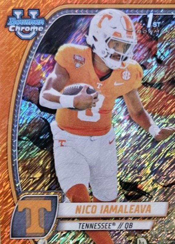 Best Prices Available For Sale of Nico Iamaleava 2024 Bowman Chrome University #139 Orange Shimmer Refractor /25 (1st)