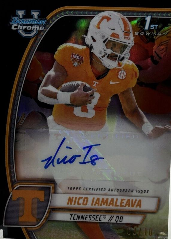 Best Prices Available For Sale of Nico Iamaleava 2024 Bowman Chrome University #PA-NIA Prospect Auto - Black Refractor /10 (1st)