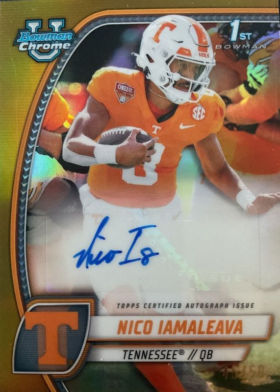 2024 Bowman Chrome U NICO IAMALEAVA #1/50 True Gold RC Auto Tennessee Volunteers