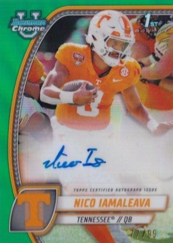 2024 Bowman Chrome U NICO IAMALEAVA 1st Auto Card Green Ref. /99 UCLA Football