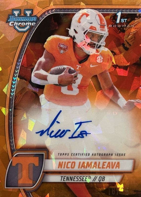 2024 Bowman Chrome U Sapphire Nico Iamaleava Orange /25 Auto Tennessee Vols 1st