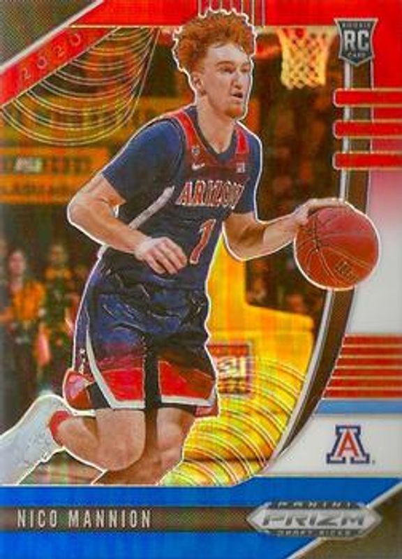 The Nico Mannion 2020 Prizm Draft Picks #18 Red White Blue Rookie card is 1 of 89 Nico Mannion's card variations in the 2020 Prizm Draft Picks set being tracked by Sports Card Investor, including #18 Base, #58 Base, #18 Choice Blue Yellow Green, #58 Choice Blue Yellow Green, and #58 Fast Break.