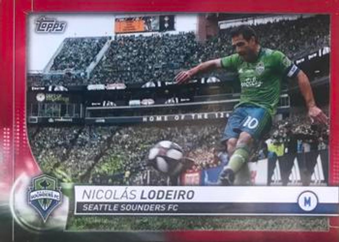 The Nicolas Lodeiro 2020 Topps MLS #111 Red /10 card is 1 of 14 Nicolas Lodeiro's card variations in the 2020 Topps MLS set being tracked by Sports Card Investor, including Base, Blue /99, Gold /50, Orange /25, and Black /1.