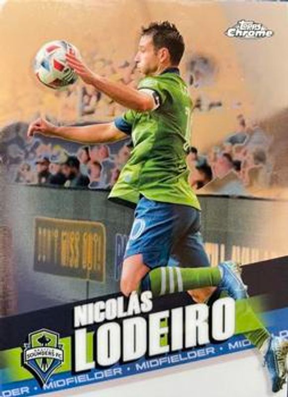 The Nicolas Lodeiro 2022 Topps Chrome MLS #10 Refractor card is 1 of 27 Nicolas Lodeiro's card variations in the 2022 Topps Chrome MLS set being tracked by Sports Card Investor, including Base, Pink X Fractor, Speckle, Aqua /299, and Aqua Lava /299.