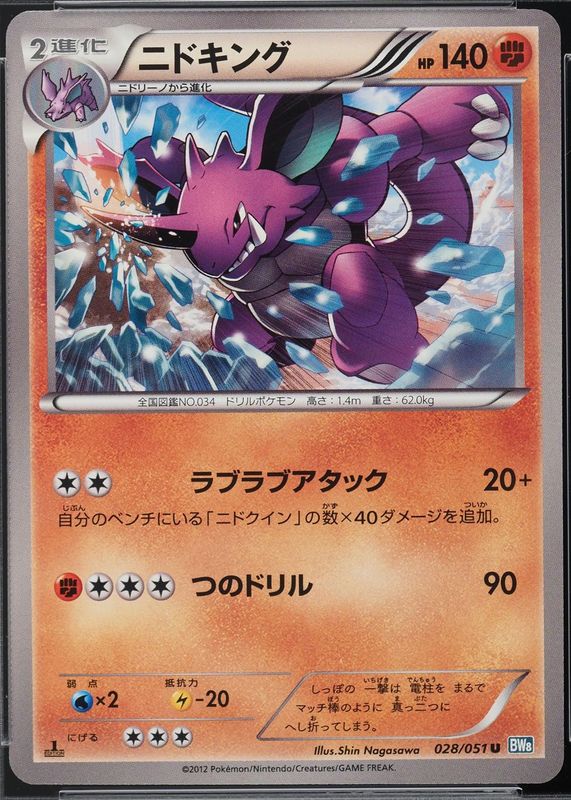 Nidoking 2012 Japanese Black & White: Thunder Knuckle #028/051 1st Edition RAW TCG (NEAR MINT) Price Guide