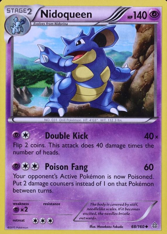 The Nidoqueen 2015 XY: Primal Clash #068/160 Base card in Raw TCG (Lightly Played) condition has not changed in price in the last 30 days and was last sold for $1.75 .