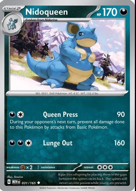 Nidoqueen 2023 Scarlet & Violet: 151 #031/165 Base RAW TCG (NEAR MINT) Price Guide