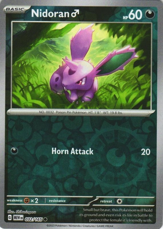 Nidoran Male Reverse Holo NM 032/165 Scarlet & Violet 151 Pokemon Card