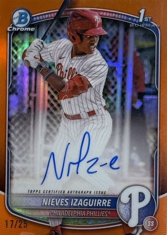 2025 Bowman Chrome 1st Nieves Izaguirre #/25 Orange Refractor Auto 1st Bowman